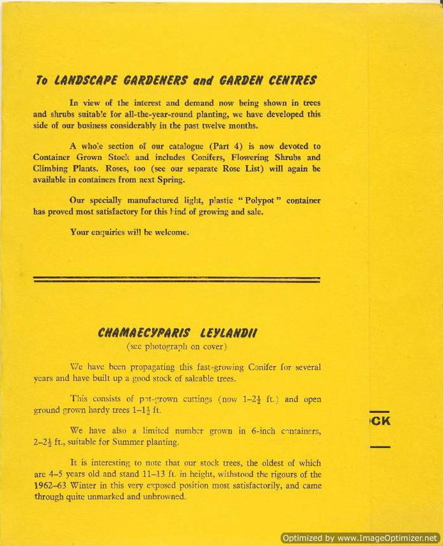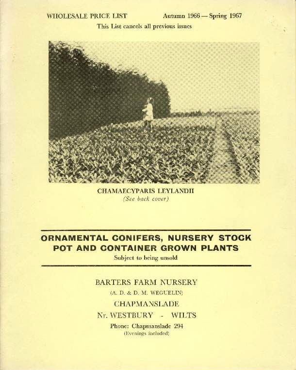 Barters has seen huge changes in the horticultural industry over the past 60 years. Under the care of Douglas Weguelin, it was a pioneer in the growing of hardy nursery stock in pots and the use of polythene tunnels, the first one being made from old wartime nissen huts. Whether you like or loathe them, Barters was also one of the first nurseries to grow leylandii conifers - this picture shows some of the originals taken in 1972 - and we still have some of them acting as windbreaks on site today.