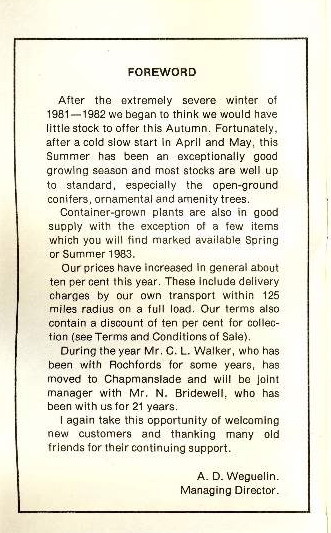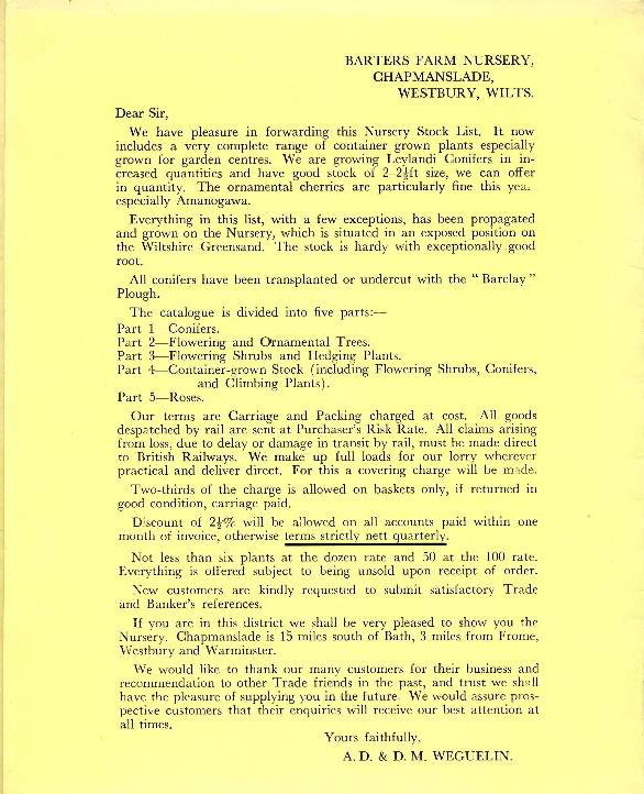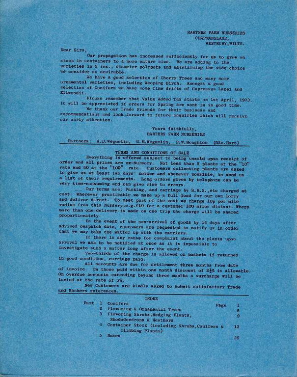 If you click on the slideshow below (it's best viewed in pop-out mode so you can read the text), you'll see how Barters has changed over the years through the catalogues that have been produced. Prices have gone up a little, leylandii hedging has gone from being a star to a villain, container-grown plants are now the norm and customers no longer have to wait 14 days for the arrival of their plants (sometimes courtesy of British Rail!)